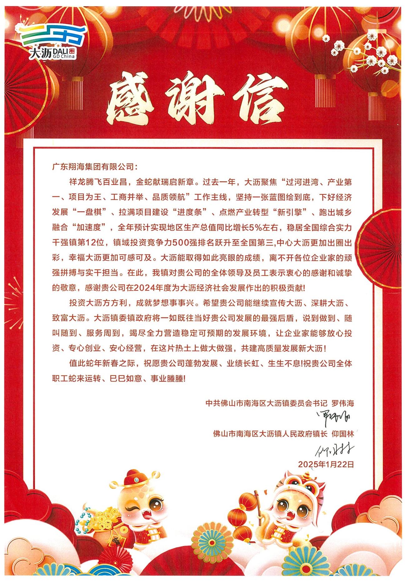 MK平台深感荣幸,新春之际收到了一封来自大沥镇政府的感谢信。作为大沥的本土企业,我们深知企业的成长离不开当地政府和社会各界的支持与厚爱。在此,我们衷心感谢大沥镇委镇政府,感谢各位合作伙伴的鼎力支持和信任。
